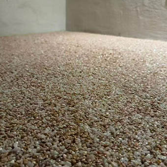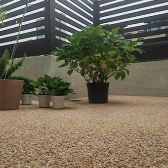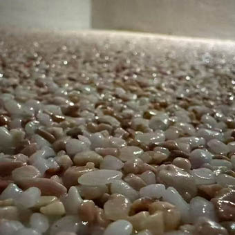 Resin-washed stone is a composite decorative material created by combining natural stone particles (such as quartz sand, gravel, and pebbles) with environmentally friendly resins (such as epoxy and acrylic resins) through a special process. The surface exhibits the rough texture and rich colors of natural stone, while the resin coating provides high stability and waterproof and stain-resistant properties. With a porosity of 15%-25% and a water permeability of 270L/㎡/minute, it quickly drains accumulated water, regulates surface temperature, and mitigates the heat island effect. This product is widely used in interior decoration, outdoor landscaping, public buildings, and functional areas.