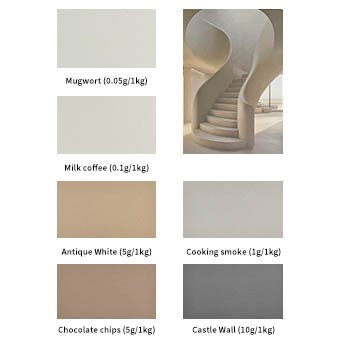 Micro-Ceramic Clay Paint is a high-end decorative material that uses natural clay as its core raw material, combining ceramic microparticles with inorganic binders. It uses micro-ceramic nanotechnology to form a ceramic-like surface with a hardness of up to 6H (far exceeding the 2H of ordinary paint). Its design is inspired by the fusion of traditional ceramics and modern minimalist aesthetics. The surface presents a variety of three-dimensional textures such as matte, sandstone, and imitation stone patterns. The colors cover 48 mineral colors, from classic neutral colors to fashionable and bright colors. The product supports integrated seamless construction of walls, floors, and ceilings. There is no need to scrape putty or lay tiles. It can be used right out of the bucket and can be used normally 7 days after construction. It is an upgraded environmentally friendly material to replace microcement and artistic paints. The product is widely used in: residential spaces/commercial places