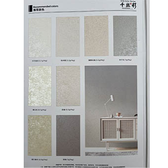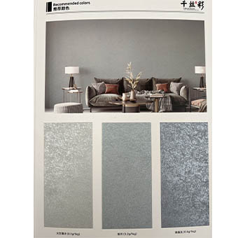 This high-end silk velvet (Thousand Silk Colors) art paint blends natural minerals and environmentally friendly resins, achieving a 94.1% formaldehyde purification rate and ultra-low VOC <25g/L through patented formaldehyde removal technology. It presents a delicate silk velvet texture with pearlescent sheen, and boasts excellent performance such as 10,000 washes resistance, 2H hardness, mildew resistance, antibacterial properties, and breathability. It is an artistic and environmentally friendly choice for wall decoration in modern light luxury residences and commercial spaces. Welcome to contact the manufacturer for wholesale supply, bulk purchase, or customized silk velvet (Thousand Silk Colors) exclusive effects.