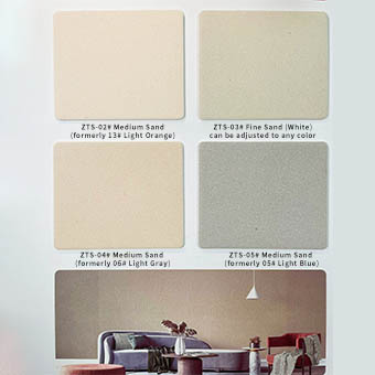 Formaldehyde-Free: Made from natural inorganic materials (such as alkaline sintered colored sand) and environmentally friendly emulsions, it is non-toxic, odorless, and free of harmful substances (such as APEO and formaldehyde). It has passed authoritative environmental standards such as the French A+ certification and the China Ten-Ring Certification. Construction is odorless and ready for occupancy 24-48 hours after completion. Its maternal and infant safety standards make it suitable for sensitive locations such as children's rooms and hospitals.